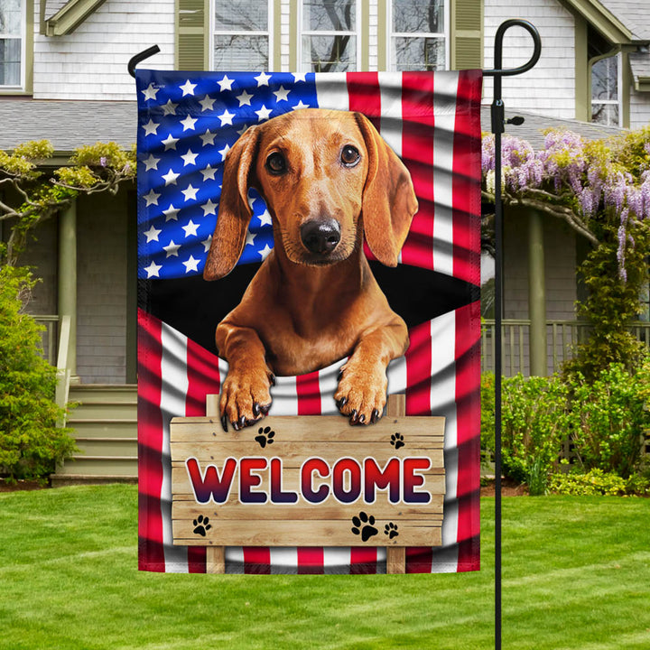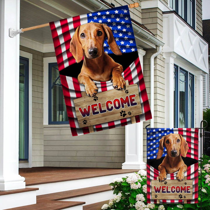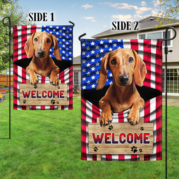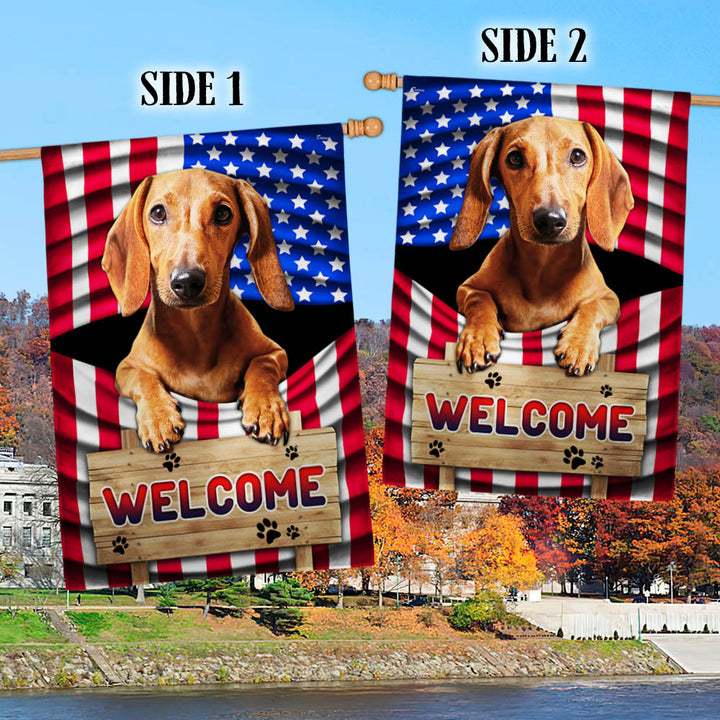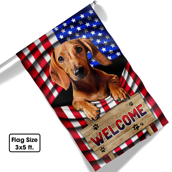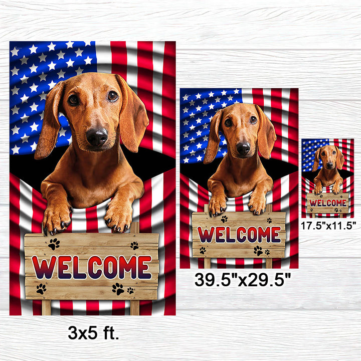 Red Dachshund Dog Welcome American Flag TQN1135Fv3a
