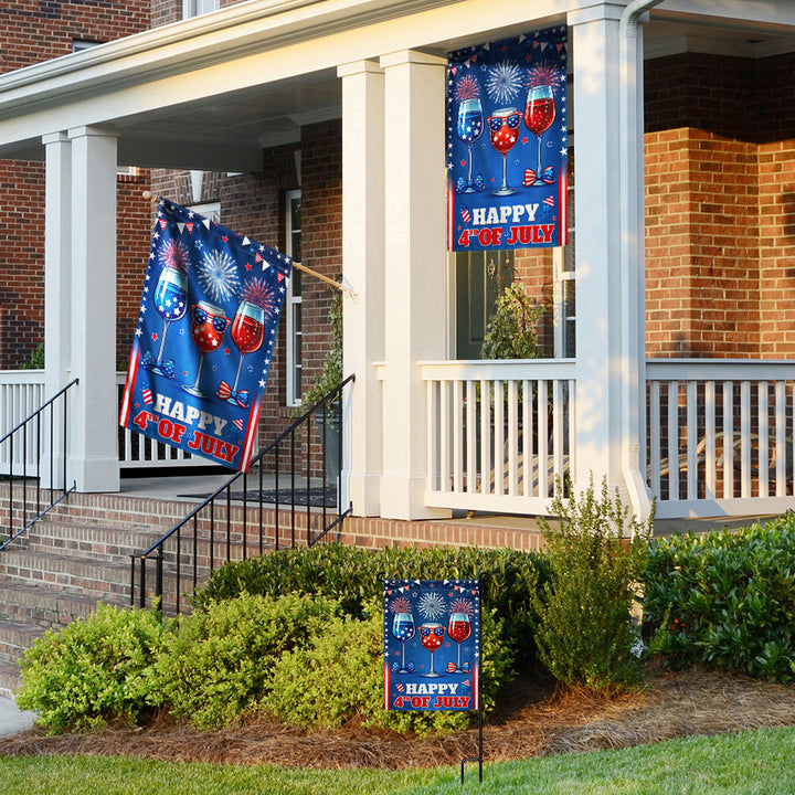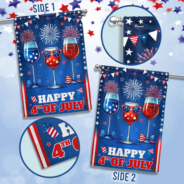 Flagwix American Flag - Red White Blue Wine Glass Happy 4th Of july Flag