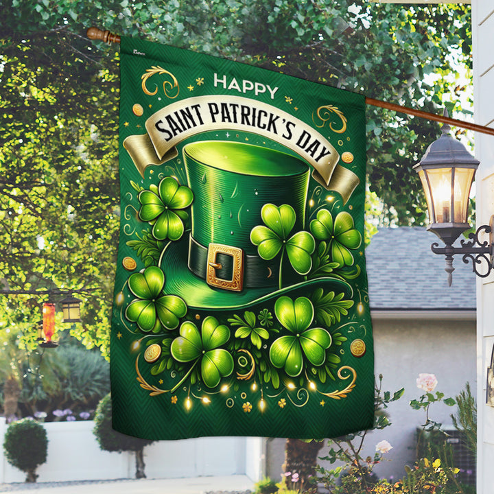 Saint Patrick's Day Shamrock Leprechaun Hat Flag