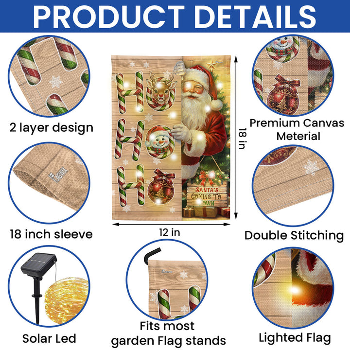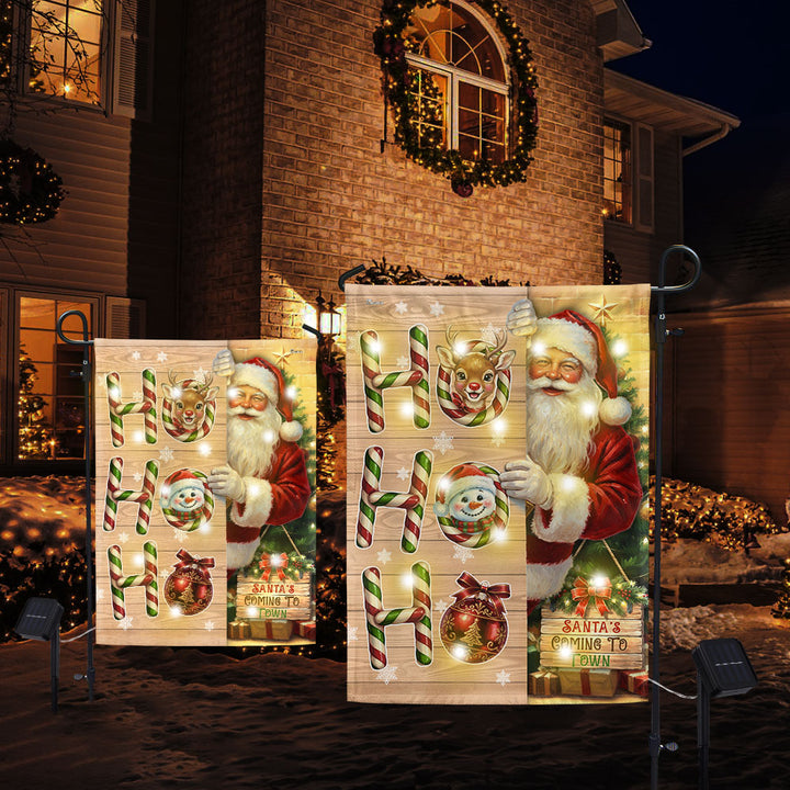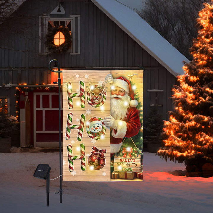 Santa Claus Flag | Santa Ho Ho Ho Welcome Home Solar Led Garden Flag
