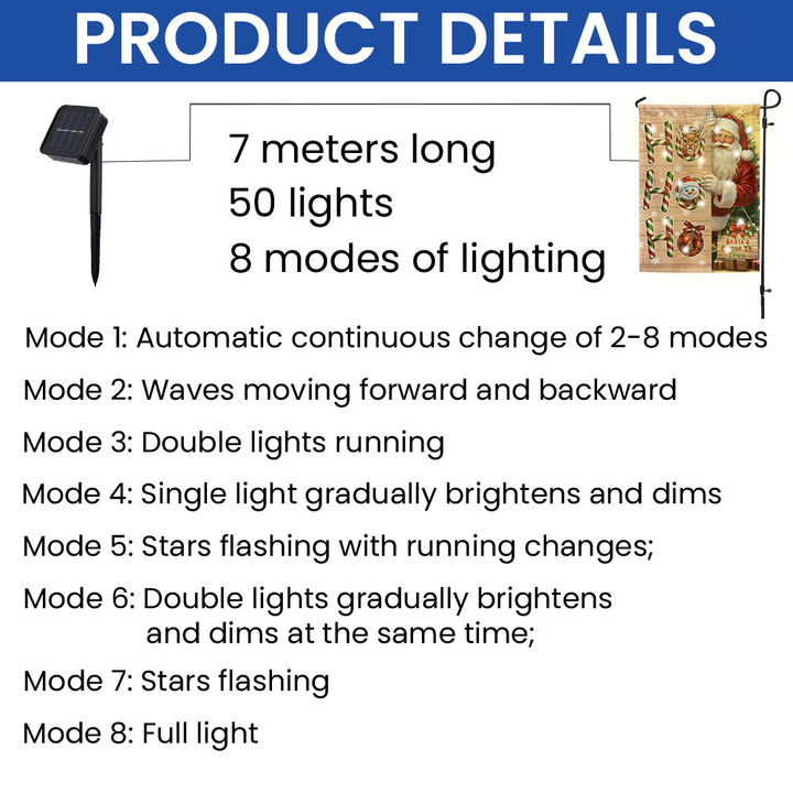 • 8 Light Modes - The solar led lights outdoor waterproof create different aesthetic atmosphere with various light modes. You can choose from 8 different lighting modes and speeds to enhance the festive ambience, making your Christmas colorful!