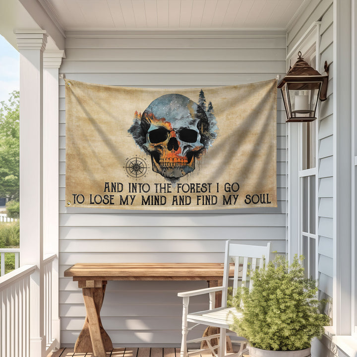 Skull And Into The Forest I Go Funny Dorm Flag