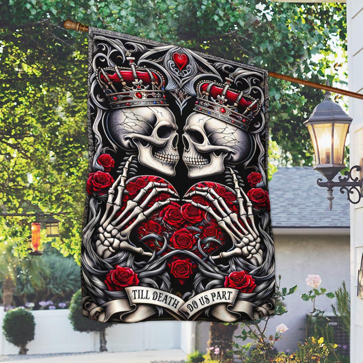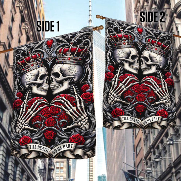 Skull Couple Till Death Do us part, Happy Valentine Flag