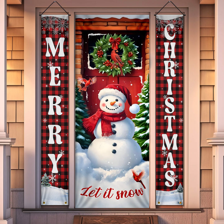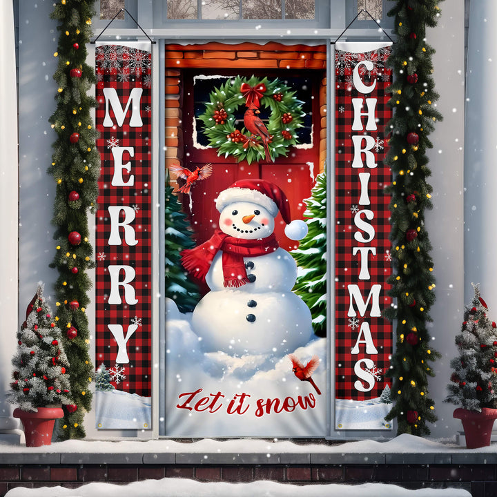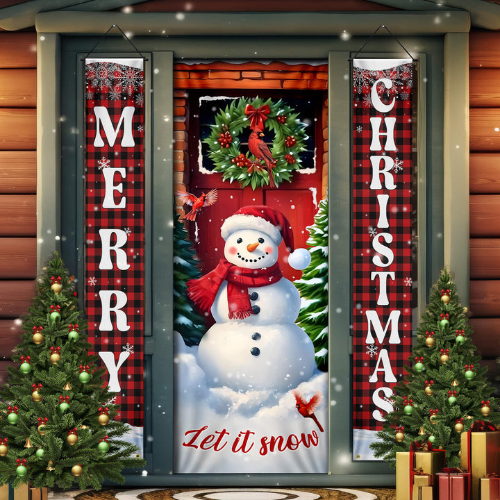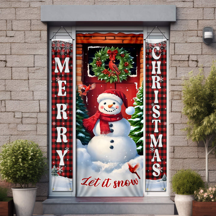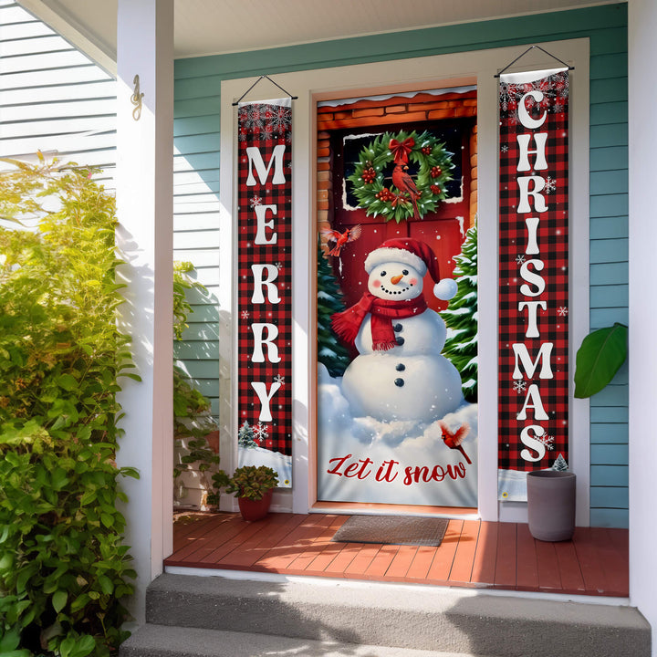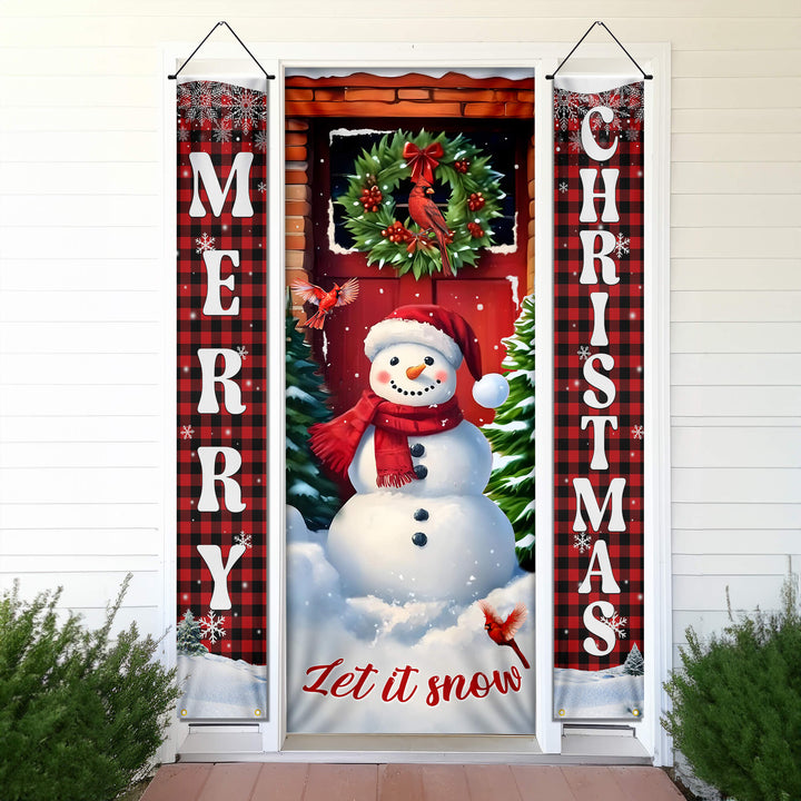 Snowman Cardinal Let It Snow, Merry Christmas Door Cover and Door Banners