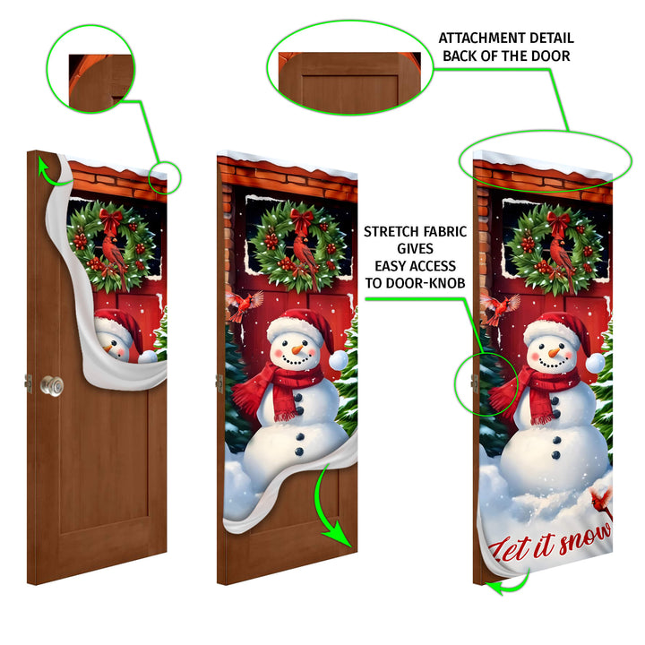 Snowman Cardinal Let It Snow, Merry Christmas Door Cover and Door Banners 3-Day Shipping