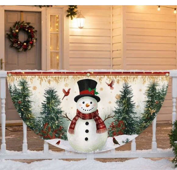 Snowman Festive Winter Holiday Christmas Non-Pleated Fan Flag