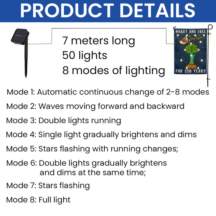 • 8 Light Modes - The solar led lights outdoor waterproof create different aesthetic atmosphere with various light modes. You can choose from 8 different lighting modes and speeds to enhance the festive ambience, making your Christmas colorful!