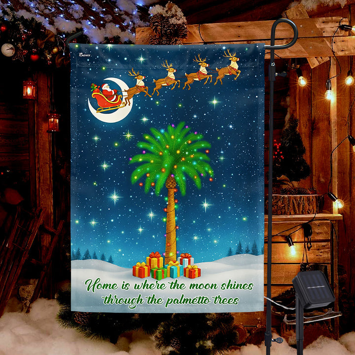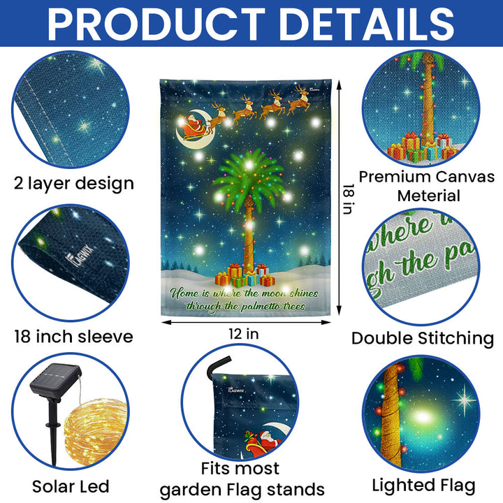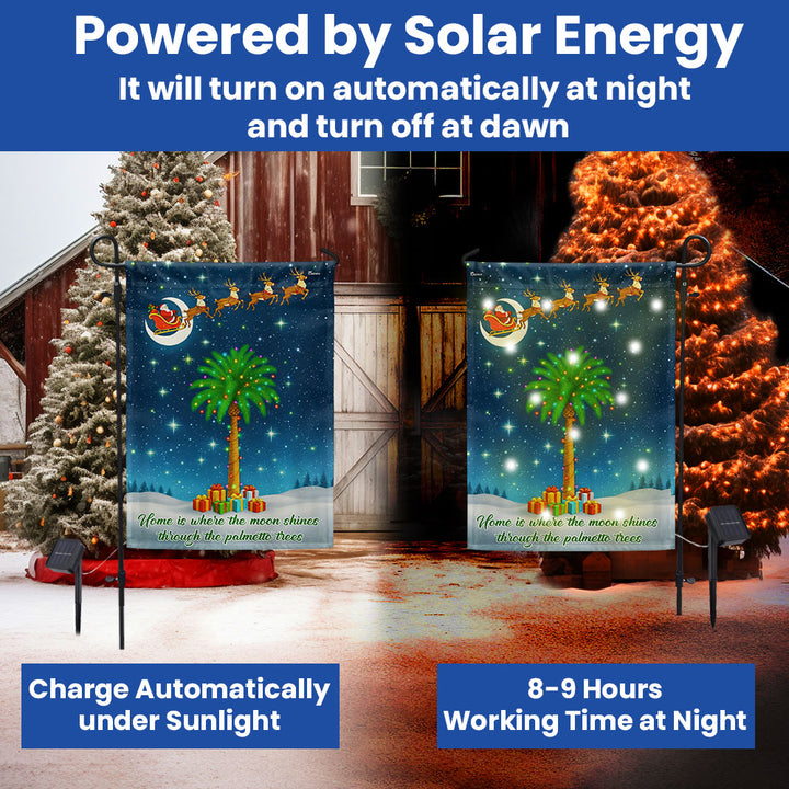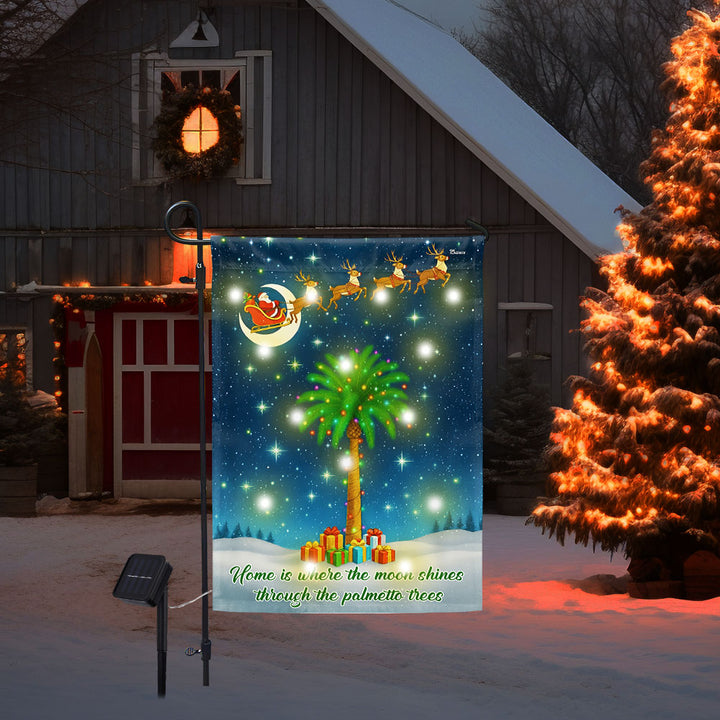 South Carolina Christmas Flag | Santa Palmetto Tree Solar LED Garden Flag