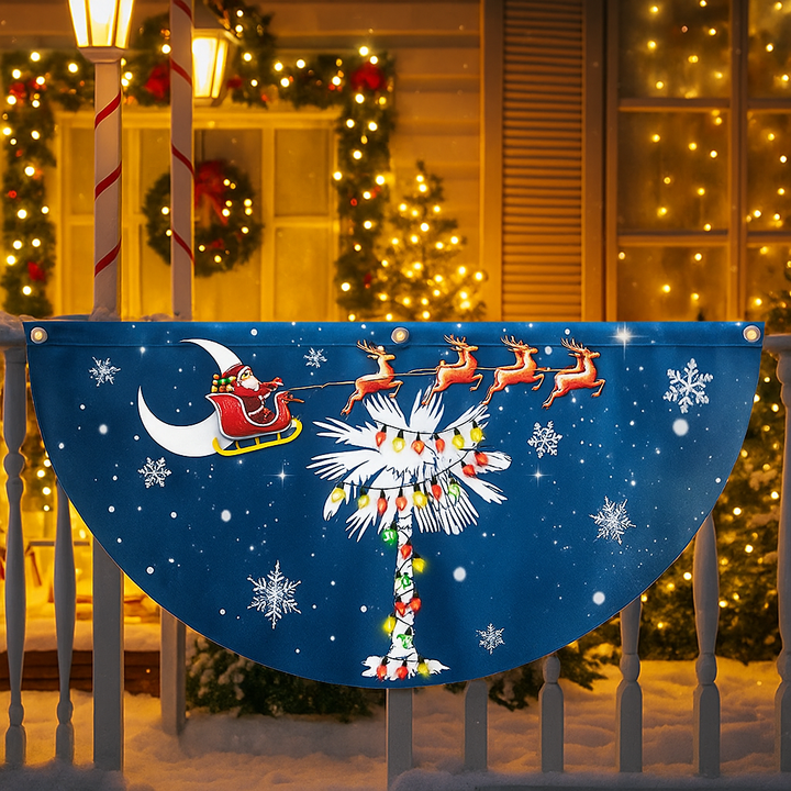 South Carolina Christmas Fan Flag - Santa & Palm Tree Non-Pleated Décor - 3-Day Shipping