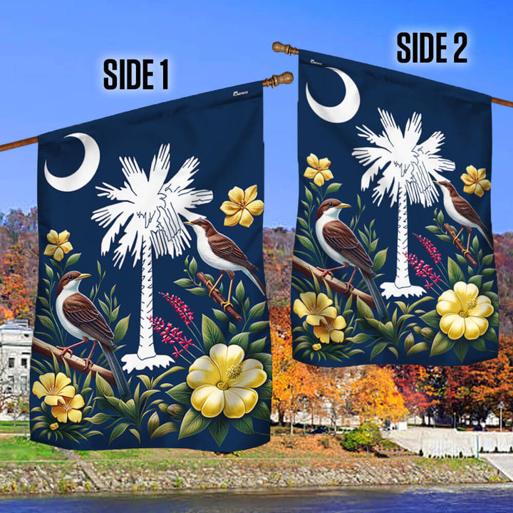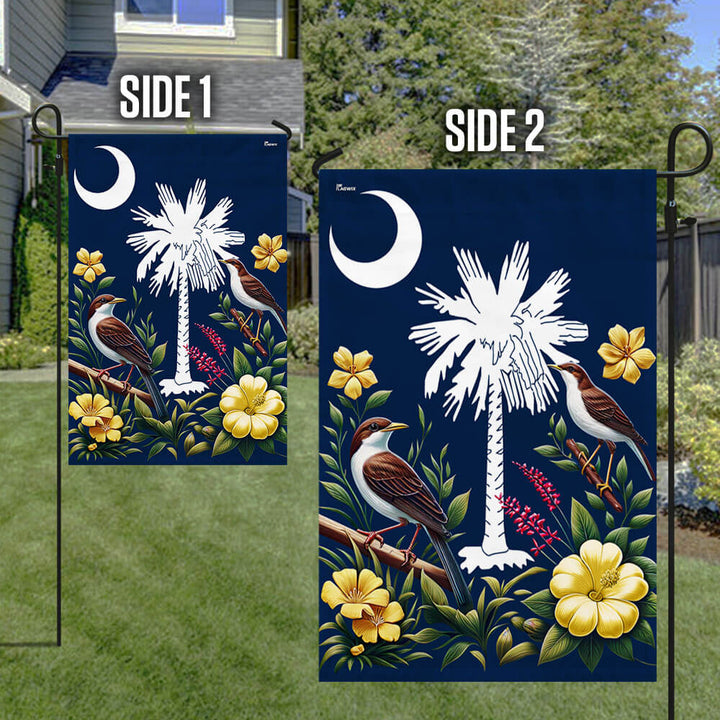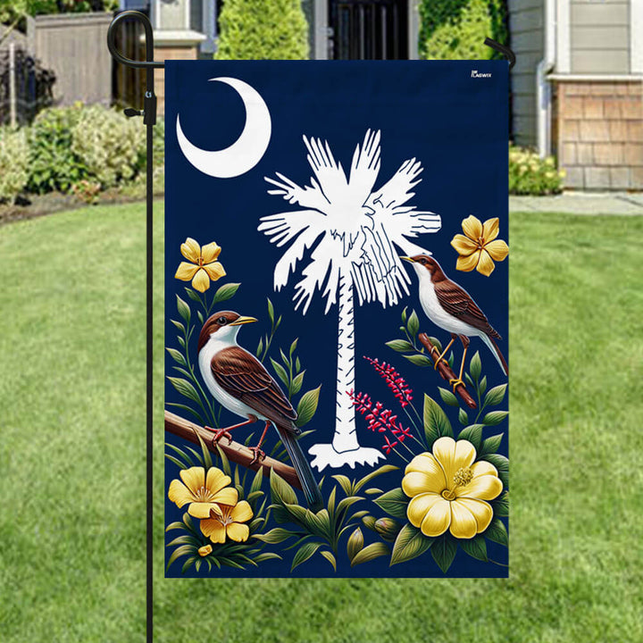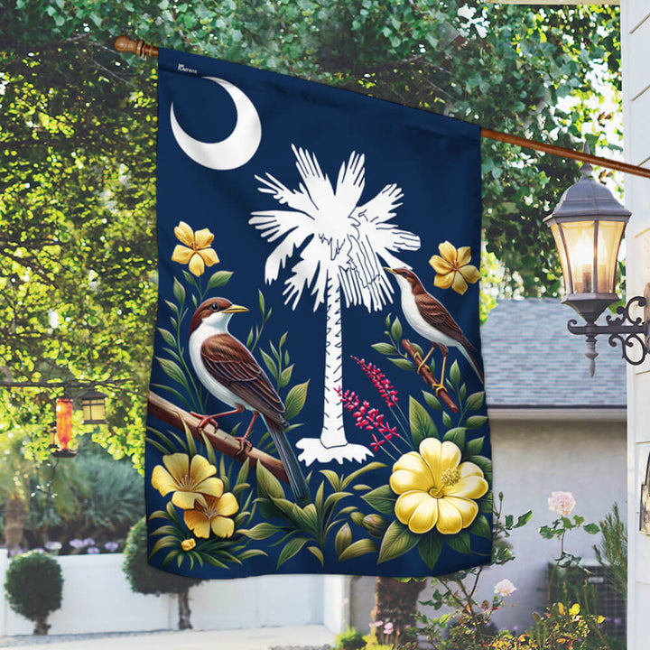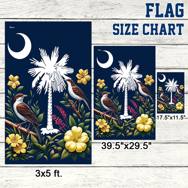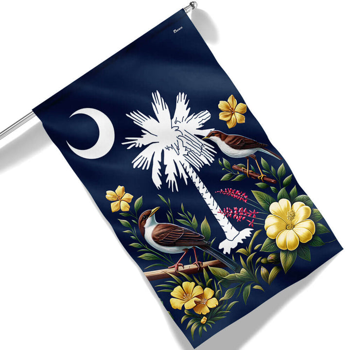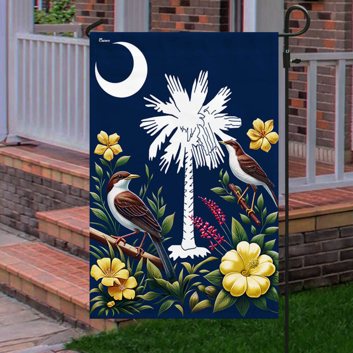 South Carolina State Flag Yellow Jessamine Flower and Carolina Wren Birds Flag