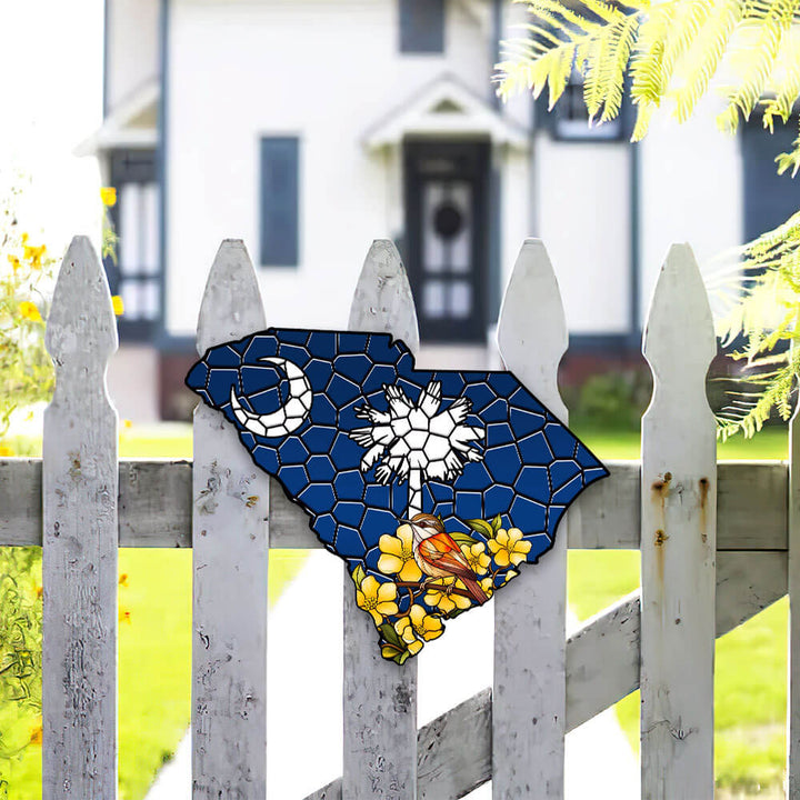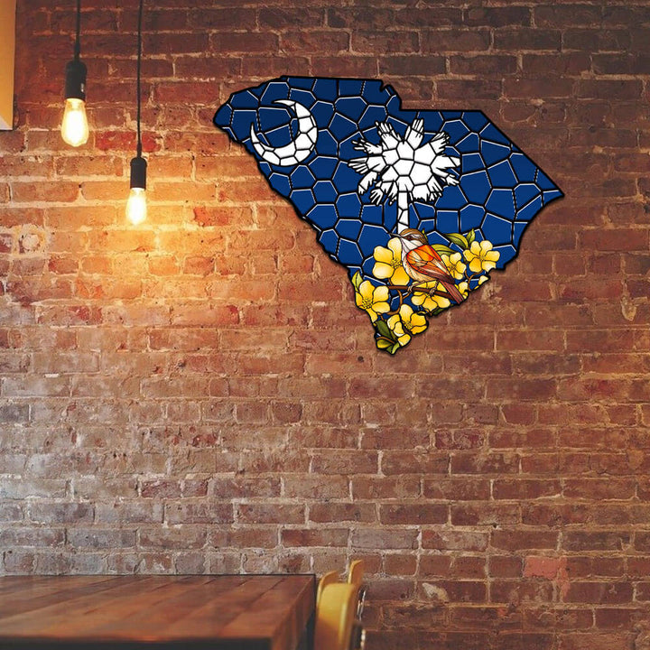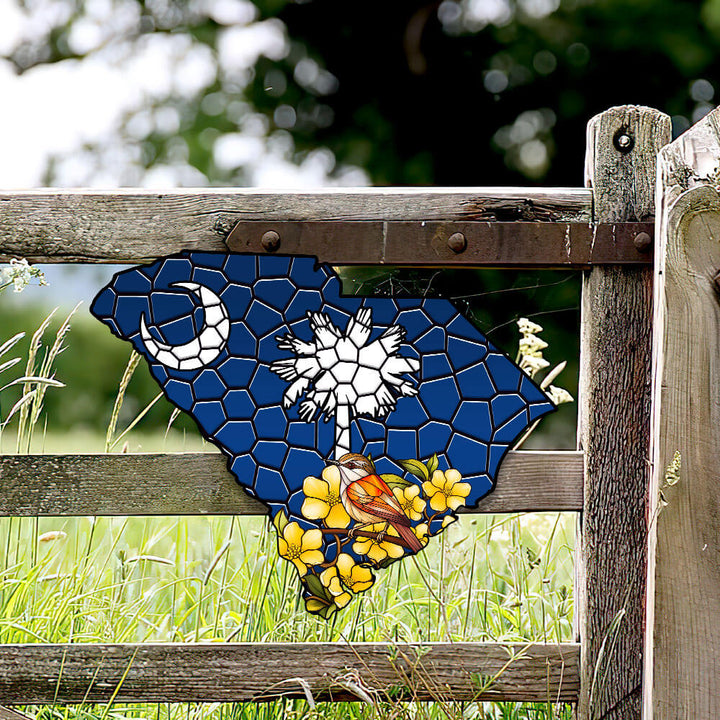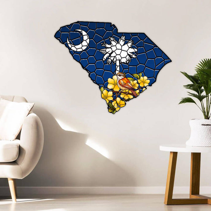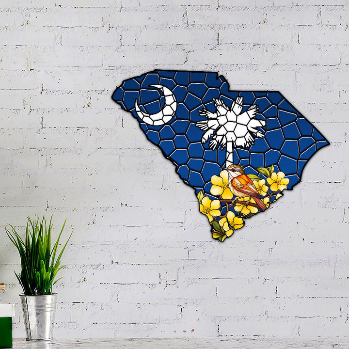 South Carolina Yellow Jessamine Flower with Carolina Wren Bird Metal Sign TPT1035MSv1