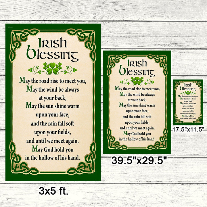 This beautifully inscribed flag encapsulates the spirit of St. Patrick’s Day, making it a perfect decoration or thoughtful gift. The Irish blessing, with its enduring message of hope, protection, and love, brings a sense of warmth and connection wherever it is displayed.