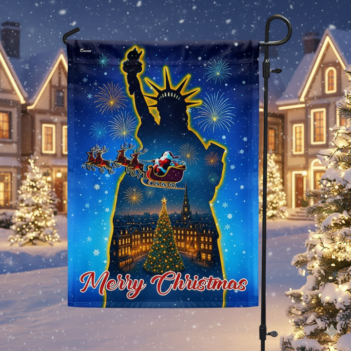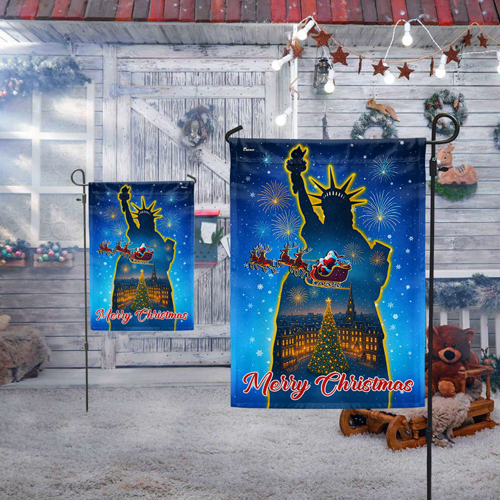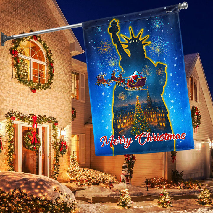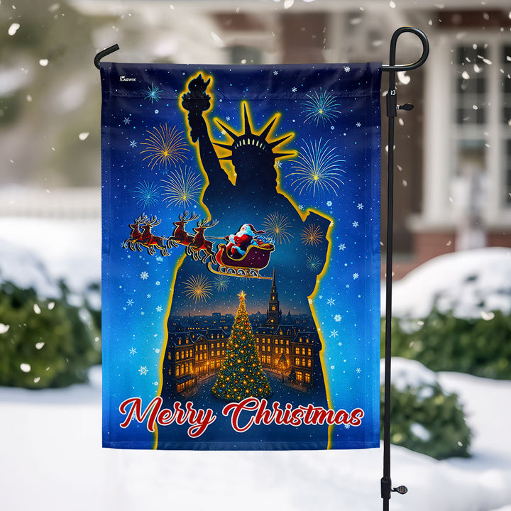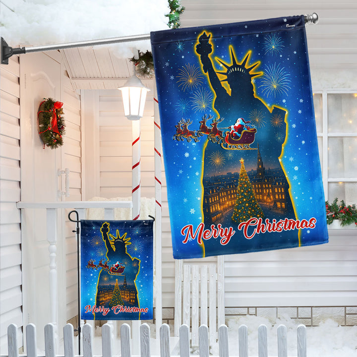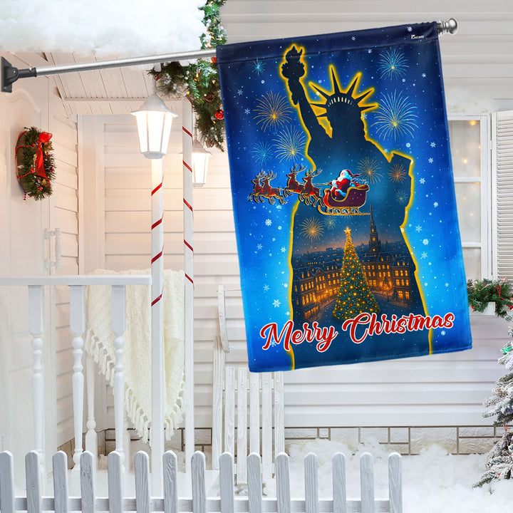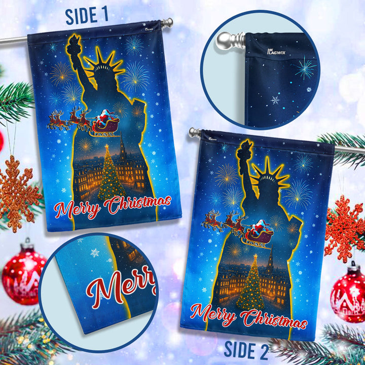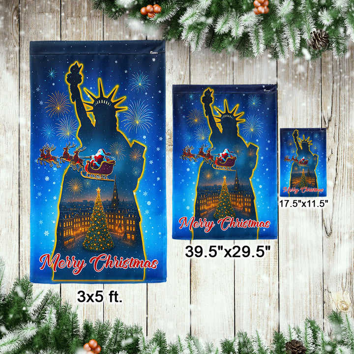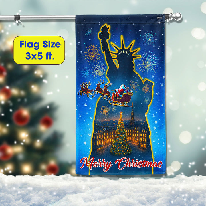 Statue of Liberty Merry Christmas Flag for Patriotic Holiday Decor