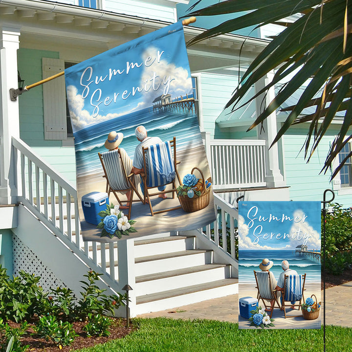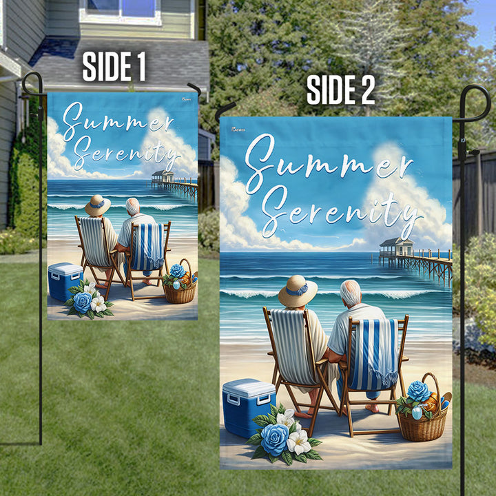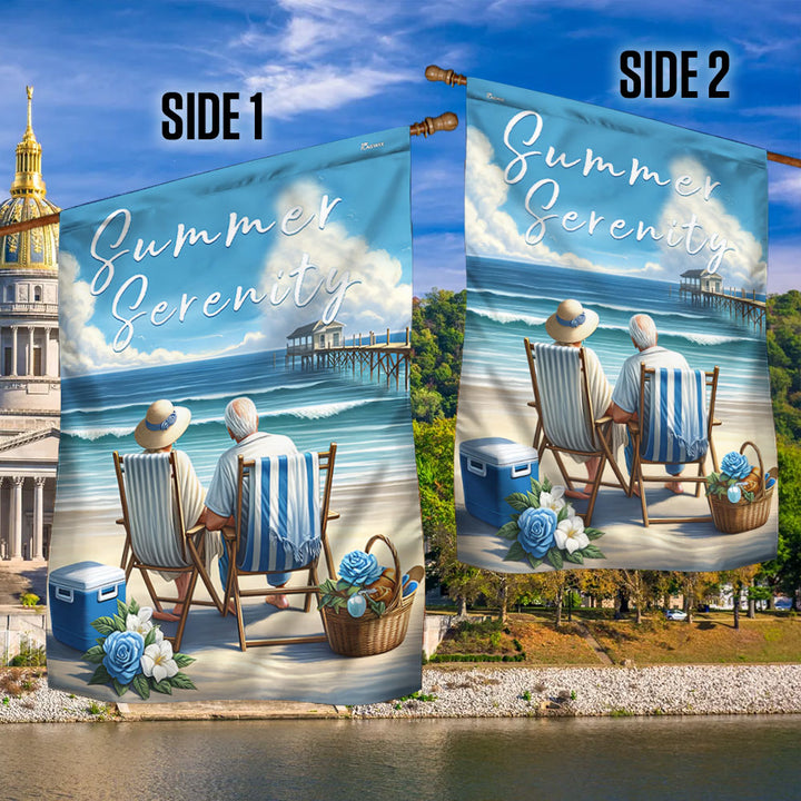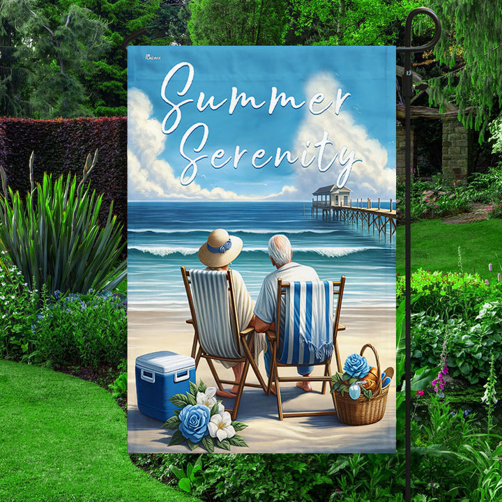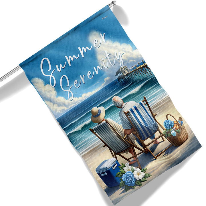 FLAGWIX Summer Serenity Old Couple At The Beach Flag