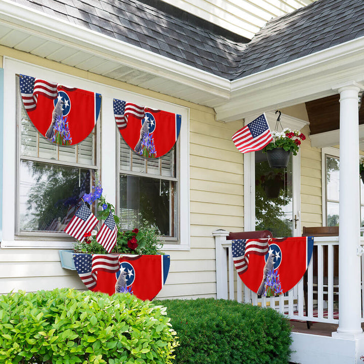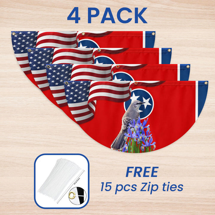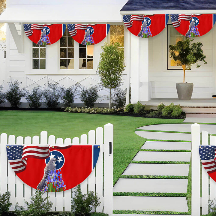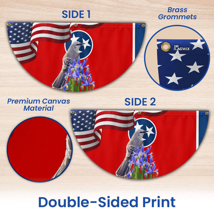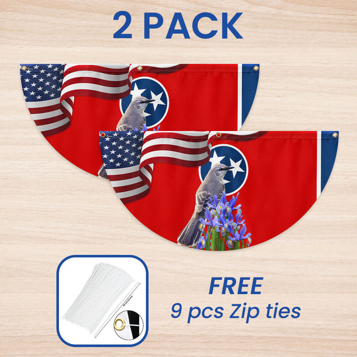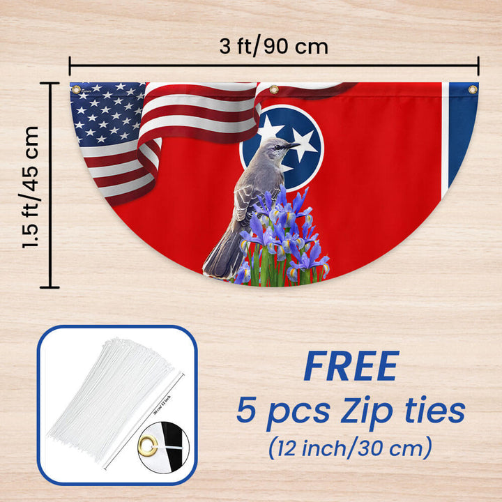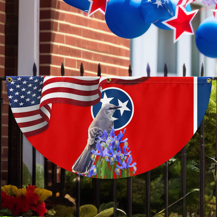 Tennessee State Mockingbird and Iris Flower Non-Pleated Fan Flag