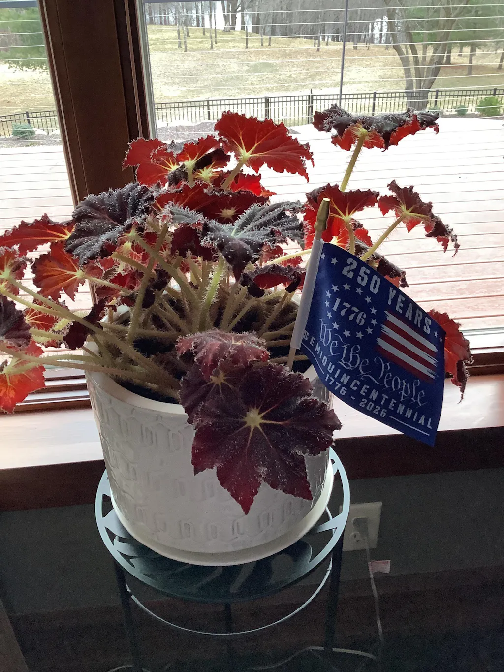 I have a Patriotic Christmas Tree that I am keeping up all year in honor of our Country's Semisesquicentennial (250th) Birthday. The 5 little Betsy Ross flags are attached to the upper portion of the tree. They are perfect!