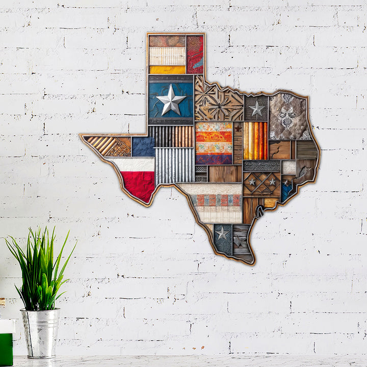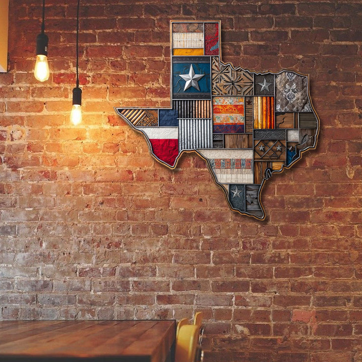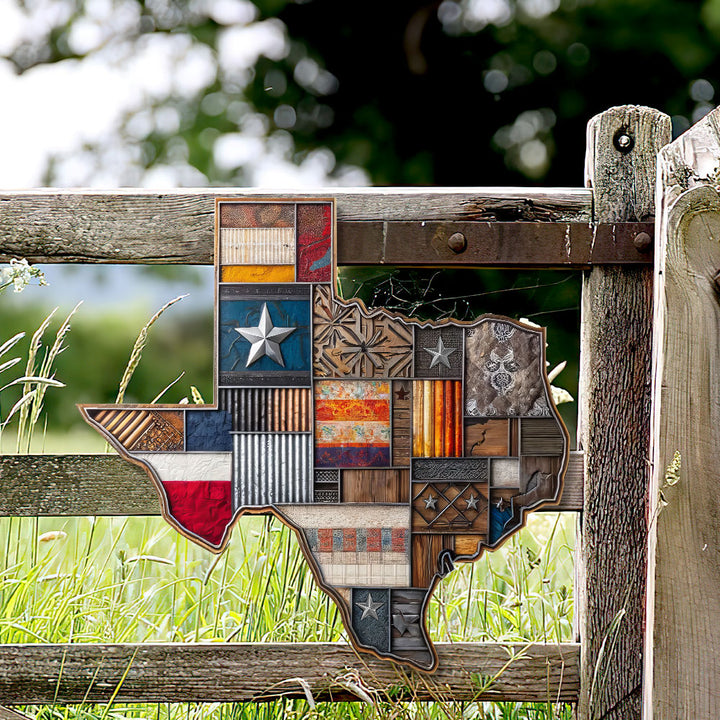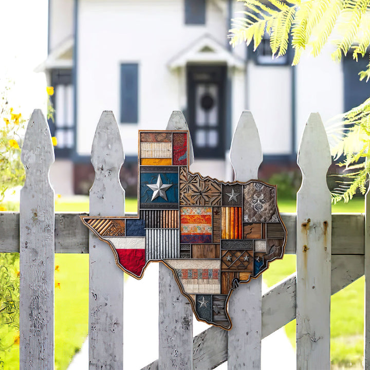 Texas Map Patterns Hanging Metal Sign
