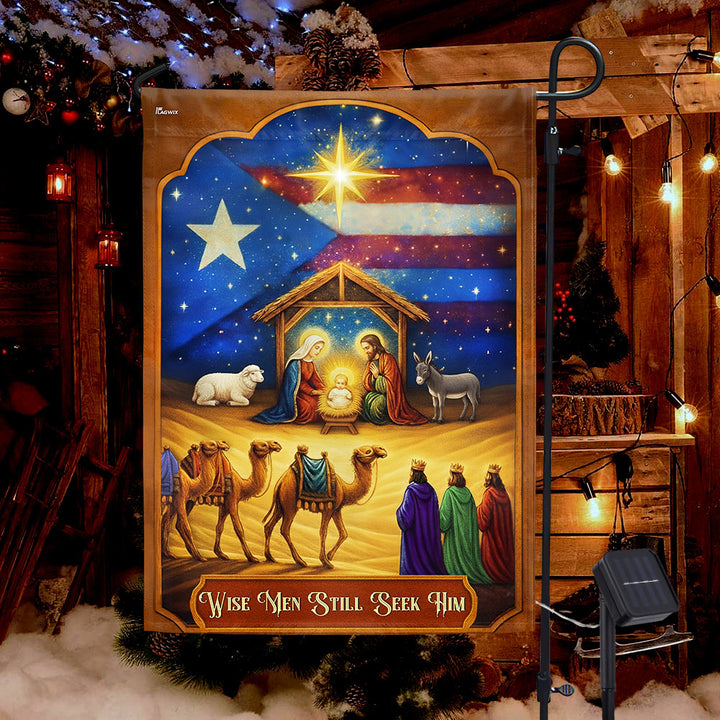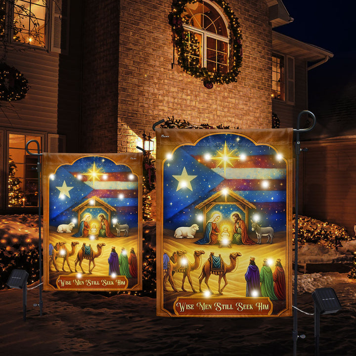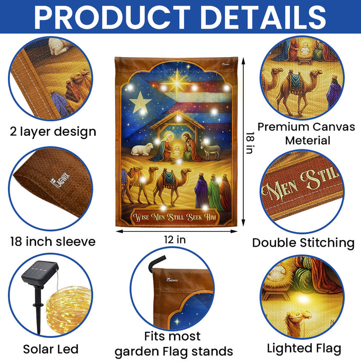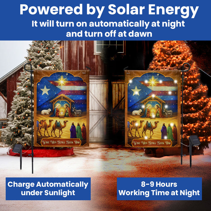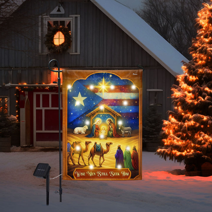Three Wise Men Puerto Rico Nativity Christmas Solar LED Garden Flag