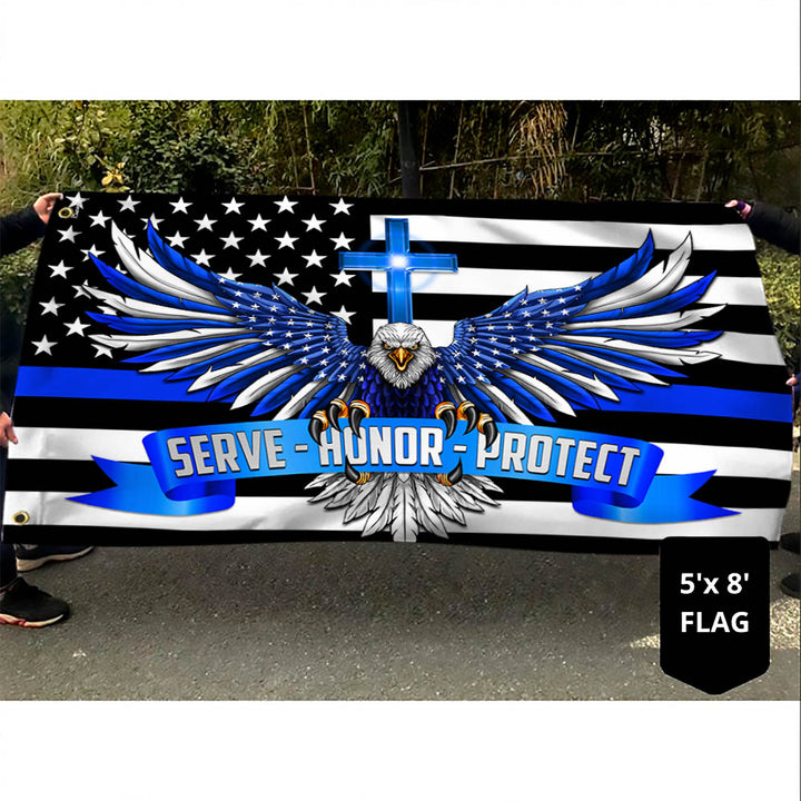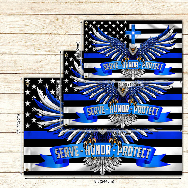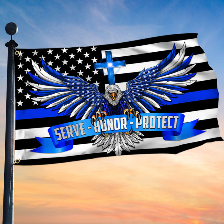 U.S. Patriotic Police, Serve Honor Protect American Eagle The Thin Blue Line Flag