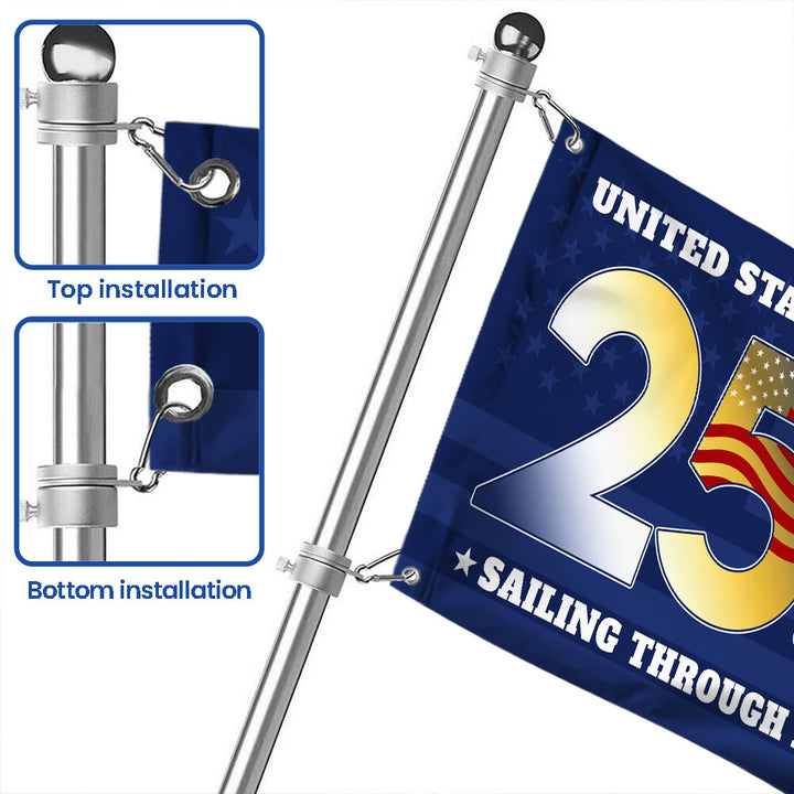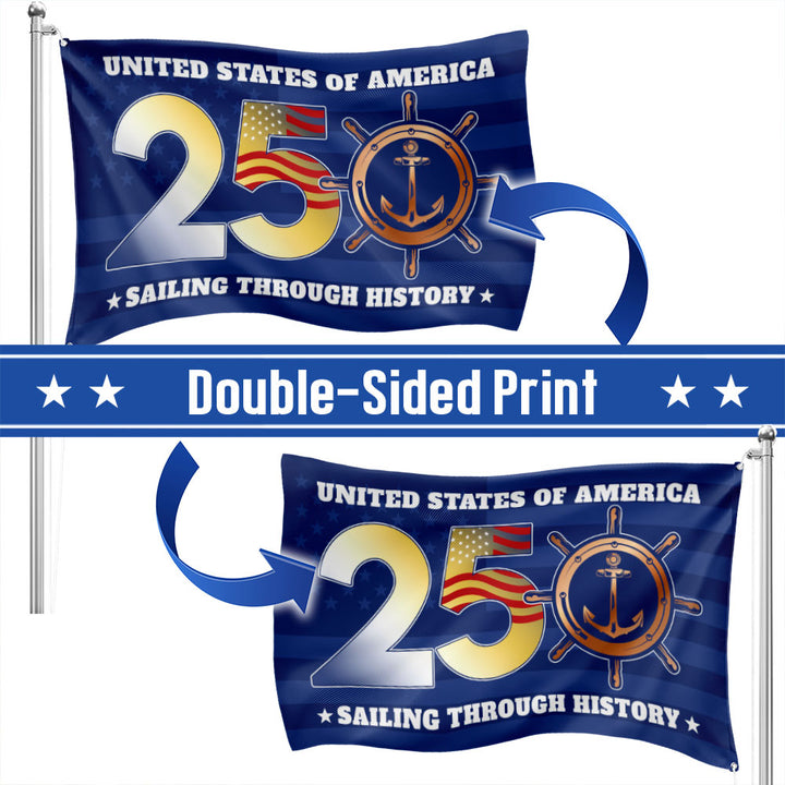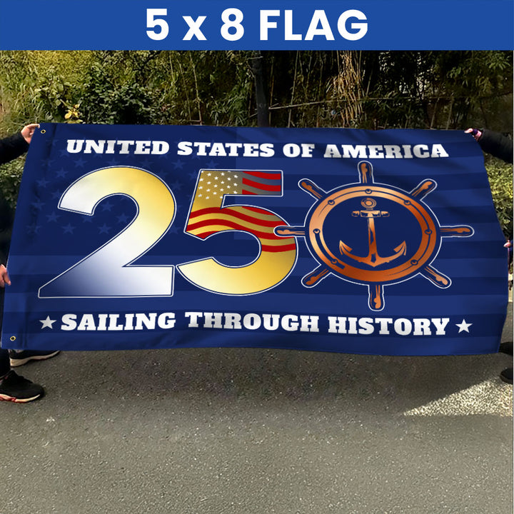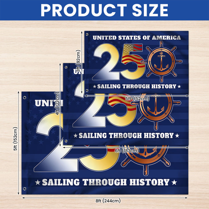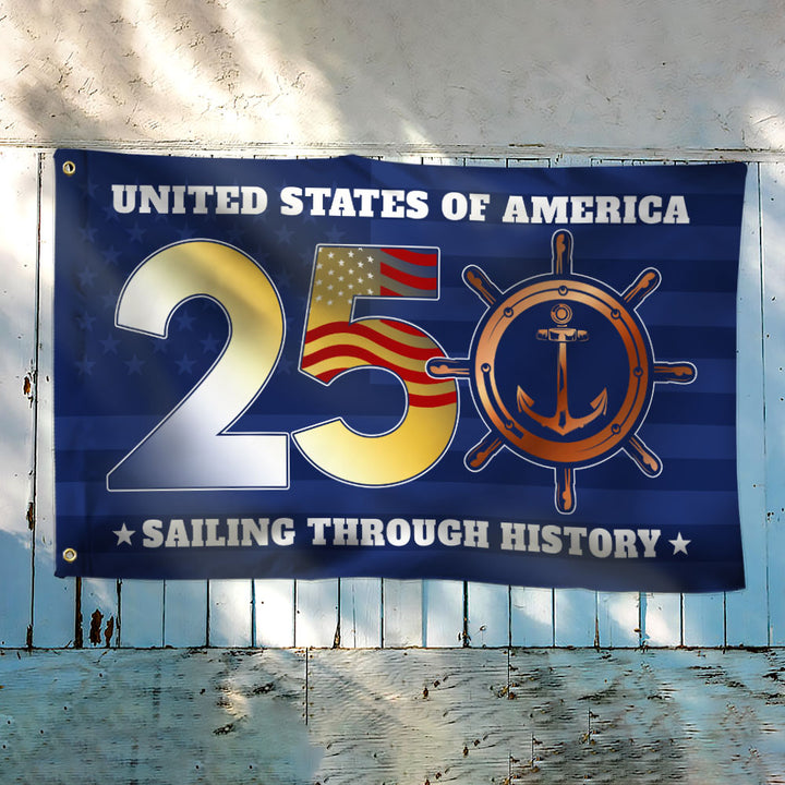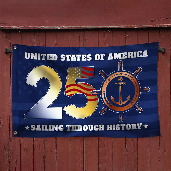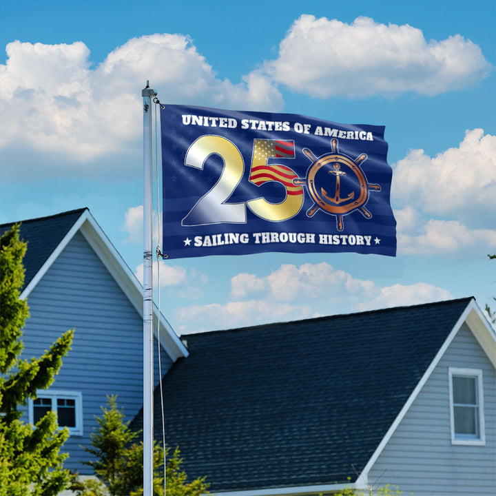 USA 250th Sailing Through History Grommet Flag for Patriotic Navy Decor