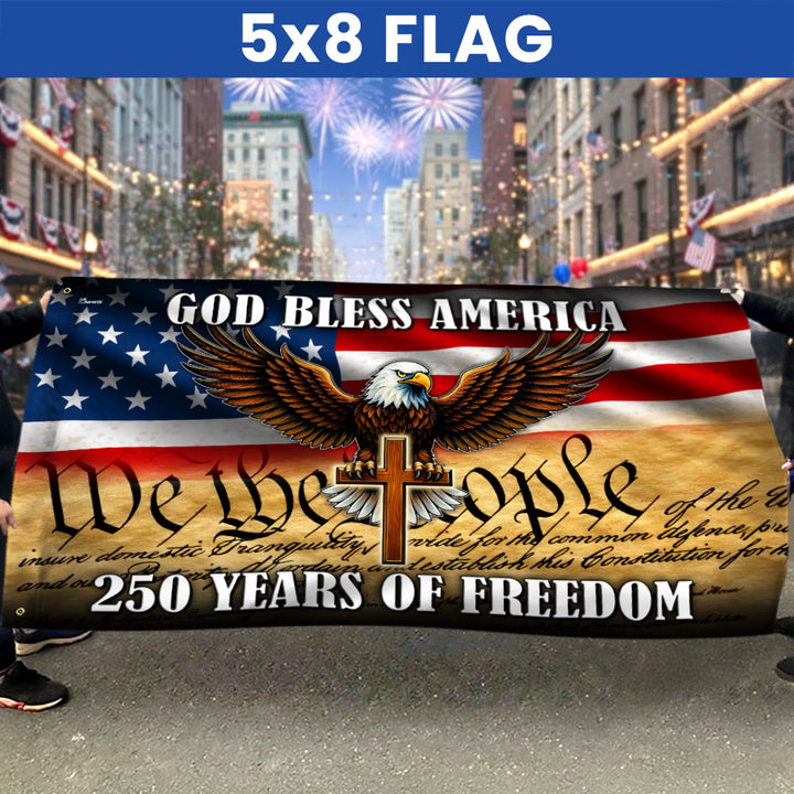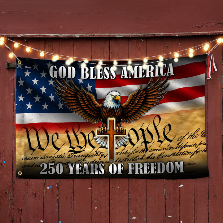 We The People Patriotic Eagle Cross 250 Years of Freedom Grommet Flag