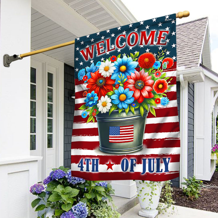 Flagwix American Flag - Welcome 4th Of july Floral Flag