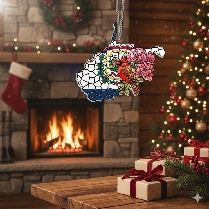 West Virginia Cardinal Gift - Rhododendron Flower Suncatcher, Acrylic Hanging Decor for Nature-Inspired Homes & Gardens