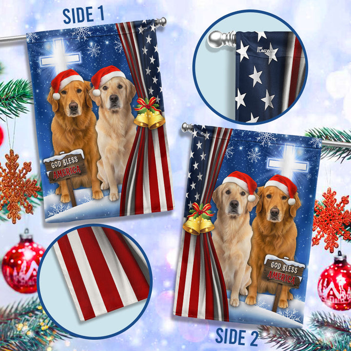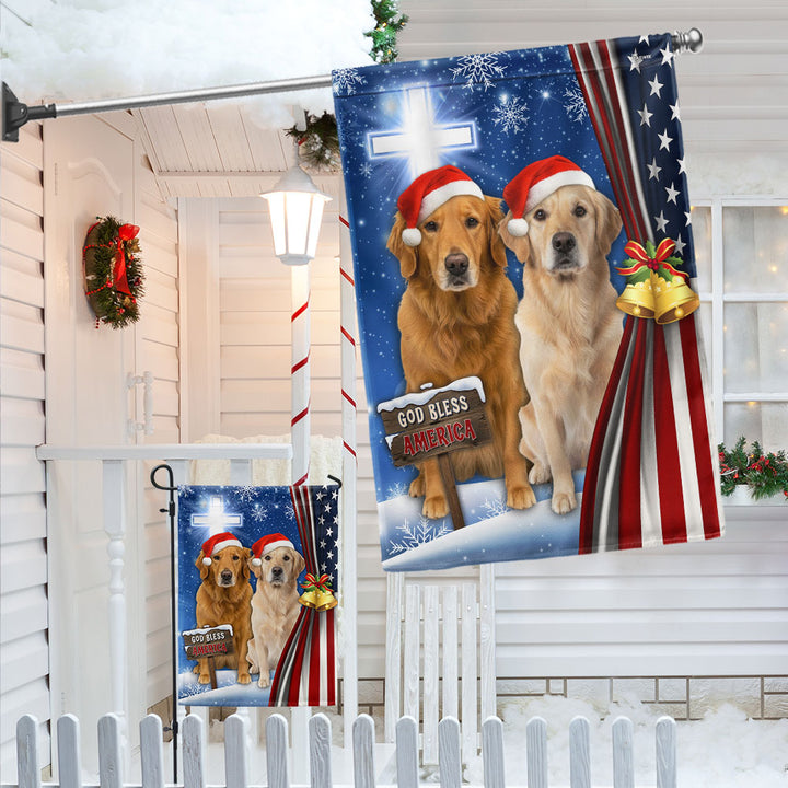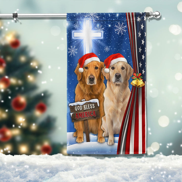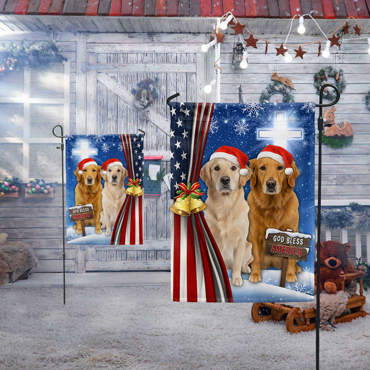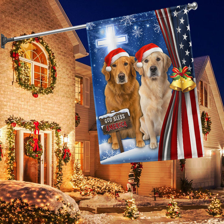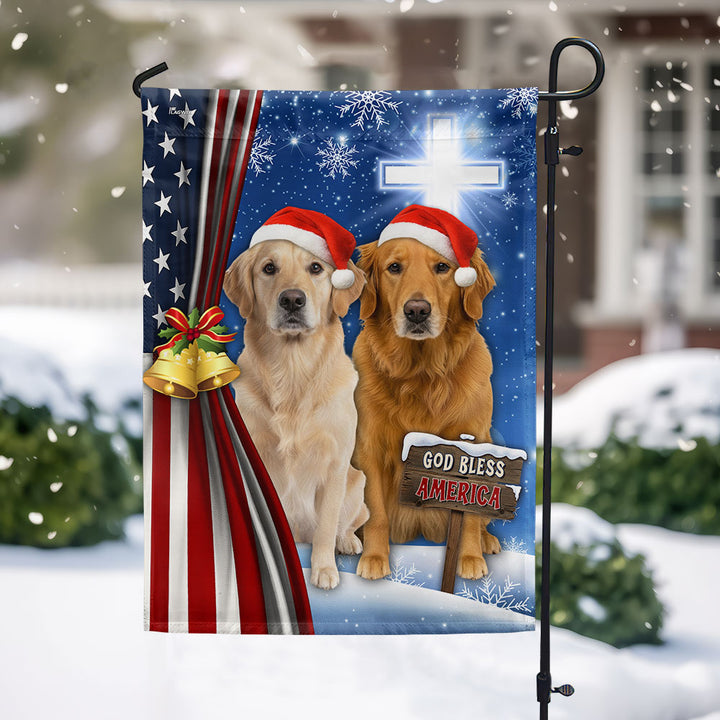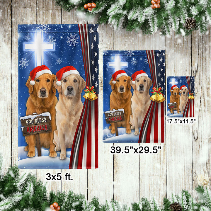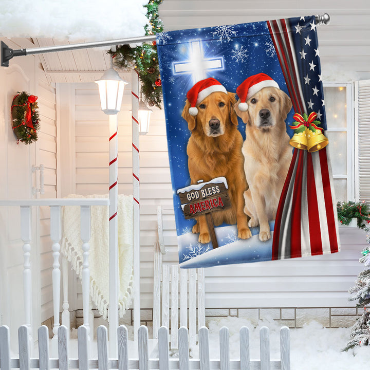 Yellow and Brown Golden Retrievers Flag | God Bless America US Flag